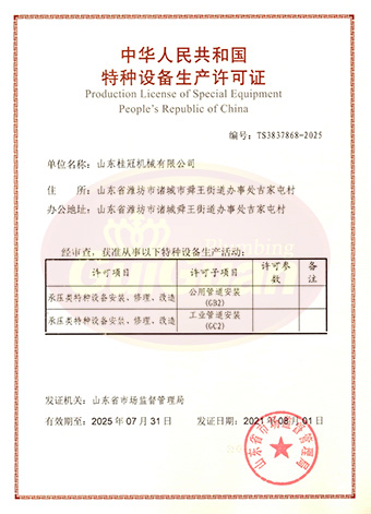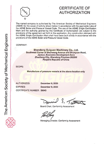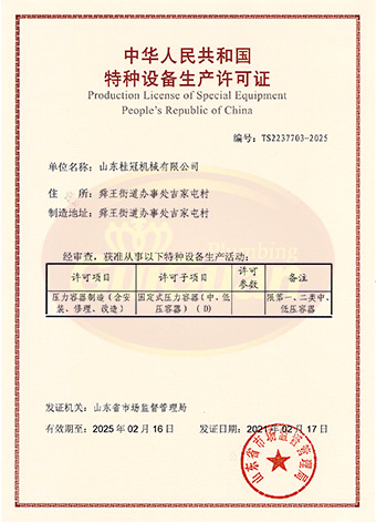 山東桂冠機械有限公司成立于2008年,注冊資金1600萬元,現(xiàn)有員工200多人,中高級技術管理人員45人,占地面積27000多平方米,生產(chǎn)車間面積12000多平方米。公司具備壓力容器產(chǎn)品的設計、制造(證書編號為:TS2237703-2025)、壓力管道安裝(證書編號為TS3837607-2025)全套壓力容器資質;通過國家ISO9001質量管理體系認證、美國ASME認證、歐盟CE認證;擁有建筑安裝機電工程專業(yè)承包叁級資質、建筑工程施工總承包叁級資質及對外貿(mào)易經(jīng)營出口權…